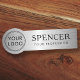 Nomes de etiqueta marcados com o logotipo de sua empresa personalizada. Nome personalizável em uma fonte serif elegante e nome da empresa/título abaixo em um fundo de gradiente de cinza prateada impresso com aparência de metal escovado simulada (na obra de arte). Você pode alterar as fontes e as cores da fonte com a ferramenta design.