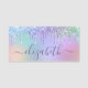 Glam etiqueta com nome apresentando brilho falso colorido em arco-íris pingando em um fundo de arco-íris. Monograma com seu nome em uma linda caligrafia roxa com floreios.
