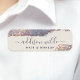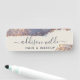Nome de etiqueta Dourado Roxo Iridescente de Glitter. Este design apresenta um estilo de letra de script de assinatura clássico definido contra um belo fundo brilhante iridescente moderno. Perfeito para um salão de beleza, cabeleireiro, maquiador ou cosmetólogo.