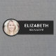 Nome de etiqueta preto de identificação de foto moderna. Carregue a foto do funcionário e adicione seu nome e título em uma simples tipografia branca.