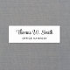 Nome de etiqueta branco profissional moderno com seu nome em um roteiro de na moda e título em uma simples tipografia.
