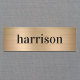 Nome de etiqueta profissional com o seu nome frente e centro em uma tipografia moderna e ousada em um fundo metálico esfregado a ouro.