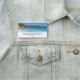 Um nome de etiqueta com uma fotografia de uma praia na ilha grega Creta. Uma bela praia azul tropical com surf de espuma. Um maravilhoso destino de viagem tranquilo.