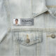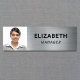 Nome de etiqueta moderno com sua foto em um fundo metálico falso prateado escovado. Adicione seu nome e título em uma simples tipografia.