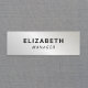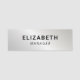 Simples nome de etiqueta moderno com nome e título contra fundo metálico falso prateado.