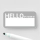 Vazio moderno "Hello, My Name Is", Nome de etiqueta com título em fonte de sans serif branca e negrito com espaço de vazio branco para o seu nome no fundo da cinza. Perfeito para estagiário, tripulação, funcionarios, grupo, equipe e muito mais.