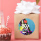 O tema dos anos oitenta é com óculos de sol, fita cassete, abertura de tinta e obrigado de impressões geométricas de cor ousada que você cola.