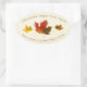 Personalize esta etiqueta de xarope de bordo com o seu nome comercial e xarope de bordo. O adesivo oval de sépia pálida é desenhado com três folhas de ácer, cada uma amarela, verde e vermelha.
