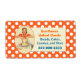 Etiquetas de padaria personalizadas e divertidas. Uma laranja com um padrão de bolinhas branco é o fundo para esta etiqueta de na moda, com uma área de texto de borda em marfim redimensionada, com gráficos retrorreflectores engraçados de um cozinhar de mulher surpreendida e confusa. Personalize o texto em laranja e azul para a sua empresa de comidas.