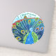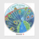 Ilustração de pavão azul timítico sobre adesivos personalizados.