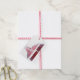 Etiqueta de presentes com foto de Red Barn em White Snow na frente. O verso é cinza leve. Você escolhe seu fio colorido.