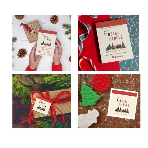 As etiquetas de presentes das árvores de Natal com esbranquiçadas verdes escuras e árvores de Natal vermelhas e textos de Jingle e Mingle são o toque perfeito para os presentes que você dá aos seus convidados de festa. Seus convidados ficarão impressionados com a sua atenção e atenção para criar uma festa alegre e festiva. Hospedagem de uma festa de Natal é a sua forma de espalhar alegria de Natal. Convide amigos e família para Jingle & Mingle este ano. Curar e personalizar sua festa de Natal e presentes de Natal com os suprimentos da festa encontrados na coleção Jingle & Mingle.