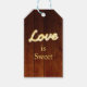 "O amor é doce" escrito em uma luz de marquee em um fundo de conselho de celeiro dá a esta etiqueta de presente brilho e apelo rústico. Role para baixo para ver a coleção completa do casamento. Se forem necessários itens adicionais para o seu evento, entre em contato conosco em prettyfancyinvites@gmail.com com sua solicitação.