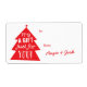 Uma pequena árvore vermelha de Natal envia uma mensagem feliz de aplauso neste autocolante de presentes de Natal personalizado. Digite seu nome para marcas pré-impressas ou CLEAR para marcas de vazio a serem preenchidas posteriormente.