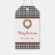 Etiqueta de Presente de Feriado de Fronteira Houndstooth. Personalize esta etiqueta festiva de presentes com sua saudação e seu nome.