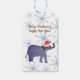 Etiqueta de presente personalizada nos feriados de inverno com elefante fofo e flocos de neve. É fácil adicionar texto e seus nomes. Escolha a cor de fundo por sua escolha.