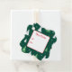 Esta etiqueta é mostrada com uma árvore de Natal festiva e impressão de flocos de neve. Personalize este item ou comprar como está. Imagem do stock vecteezy.com