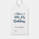 Esta etiqueta de presente é mostrada com uma impressão de Natal festiva e alegre. A cor do texto é azul profundo. Personalize este item e altere o nome do exemplo para o seu.