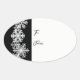 Mostrada esta etiqueta de forma oval em um impressão de flocos de neve branco e preto. Texto de Para: & De: no adesivo para o destinatário do presente. Personalizar ou comprar como está. Feito para coordenar com todos os tipos de papel de Natal, plástico de presentes.