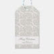 Uma etiqueta de presente elegante para qualquer ocasião, incluindo o Natal. A frente é impressa com um padrão de local e tem um modelo para o nome da família ser escrito, além de que a saudação pode ser editada para a saudação de sua escolha. Se você precisar de espaço extra, digite a ferramenta design e faça as modificações necessárias. A parte de trás está vazio e pronta para sua mensagem pessoal manuscrita. Etiqueta de presente de Natal para Cinzas de Pastel personalizadas.