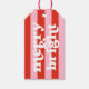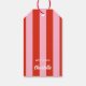 Tag Red Pink Thick Stripes Negrito Retro Natal com o texto "feliz & brilhante"