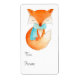 Etiquetas de presente de Natal bonitas, ilustradas, com um filhote de raposa embrulhado com um cachecol quente de inverno e cauda enrolada na neve. Pintura aquosa e design por Sarah Trett.