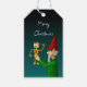 O Elf e o Robô de Brinquedos de Natal em uma etiqueta de presentes.