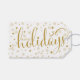 Brincadeira e moderna etiqueta de presente de feriado com roteiro de caligrafia e flocos de neve e estrelas. Itens correspondentes e outras cores estão disponíveis. Feliz Feriados!