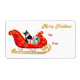 Nestes bonitos adesivos de etiqueta de presente de Natal, um gato preto e branco senta-se num bonito trenó decorativo vermelho e dourado. Ao lado do gato estão pacotes de presentes amarrados com arcos coloridos. O texto dourado à direita diz "MERRY CHRISTMAS" e o texto personalizado está vermelho. Perfeito para os pacotes de presente de Natal! Há muito mais imagens e produtos para gatos E cães disponíveis na Dog Village.