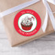Mão branca desenhada por mão branca desenhou cupcake de Natal com aspersores e canas doces personalizadas de e para o adesivo da etiqueta de presente.