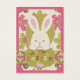 Páscoa Bunny espiando-se de impressões de pontos com fundo de impressão floral.etiqueta de presente de Páscoa.