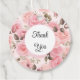 Esta etiqueta de presente é mostrada em forma redonda com uma adorável impressão floral rosa rosa rosa rosa rosa. Texto: Obrigado Personalizar este item ou comprar como está.