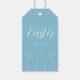 Etiqueta de presente personalizada de Páscoa com belos coelhos, elegante "Felz pascoa" na frente em azul e branco clássico, e "Salto Hippity" em bege clássico e ouro no verso. Minimalista e chique. Personalizado com nome e slogan de Páscoa curta.