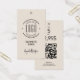 Etiqueta de roupa pendurada com código QR bege de