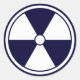 Adesivo azul escuro com um design de símbolo de radiação branco.
