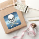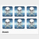 Um adesivo de skate com crânio e skate em um fundo de gradiente azul e branco. Presente perfeito para o fanático de skate na sua vida! Disponível em dois tamanhos - 6 adesivos grandes por folha ou 20 adesivos pequenos numa folha.