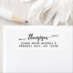 Esta etiqueta de endereço de retorno moderna apresenta seu sobrenome em um script elegante com seu endereço abaixo. O texto personalizado pode ser facilmente alterado clicando em "Personalizar".