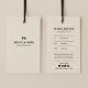 Design de etiqueta de pendurada, limpa e moderna, com um layout minimalista com espaço para nome de marca, slogan, tamanho, estilo e preço. Inclui seções opcionais para um código de desconto, obrigado anotado e identificadores de mídia social. Perfeito para marcas de moda e boutiques que querem uma design de etiqueta simples e profissional que se alinhe a uma identidade visual elegante. Este layout funciona como excelente para T-shirts, camisas de suor e outras roupa — mantendo tudo organizado e na moda em uma etiqueta de solteiro.