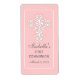Uma elegante cruz desenhada com caracóis e rico de flur de lis padrões, coordena-se perfeitamente com os nossos convites de batismo, comunhão e confirmação. Cada linha pode ser personalizada. O design de cruz cor-de-rosa bonito está disponível em autocolantes e postagens correspondentes.