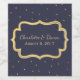 Etiqueta de vinho de casamento do tamanho do cheio chic feita em azul-sombra escuro, com pequenas bolinhas de ouro e uma área de texto enquadrada de ouro decorativo. Personalize o texto para seu dia especial. Excelente para a recepção ou como favores para os seus convidados.