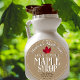 Seu nome comercial é escrito em uma fonte elegante de script em um fundo kraft. Folha de Açúcar Vermelho. O MAPLE SYRUP é impresso numa fonte decorativa com uma sombra de queda. Borda cortada.