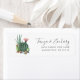 Desert Bloom devolve etiquetas de endereço adaptadas aos seus convites de casamento. Essas etiquetas de endereço de retorno têm um pano de fundo leve e um pequeno conjunto de cactos à direita do seu endereço e informações.