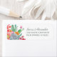 As etiquetas do endereço de retorno do casamento no deserto apresentam um buquê pintado manualmente de cacto, suculentos e flores. Personalize com seus nomes e endereço. Perfeito para a Califórnia, sudoeste, verão, boho e temas rústicos. Trabalho de arte original do KL Stock.