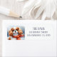 Devolva etiquetas com uma aquarela fofa Cavalier King Charles vestindo um cachecol vermelho em um dia de neve. Personalizável.