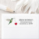 Etiqueta de endereço de retorno personalizada e cômoda com um beija-flor com ornamento cardíaco.