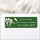Ossos de Stegossauro com balões que enviam etiquetas de endereço de retorno personalizadas com cor de fundo variável. Este dinossauro está pronto para festa.