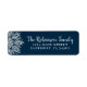Etiqueta de endereço de retorno de modelo azul e prateado com floco de neve personalizado - Floco de neve prateado com padrão de mandala em um fundo azul marinho. Dois modelos são incluídos para fácil personalização, um modelo de caligrafia de script encaracolado para seu nome e um modelo de fonte serif em negrito para o endereço.