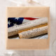 Cópias da Declaração de Independência e da Constituição dos EUA em pergaminhos enrolados com uma vintage bandeira americana