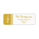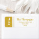 Adicione o detalhe final às suas mensagens de feriados com esta etiqueta de endereço de retorno simples e moderna da coleção de feriados JOY. Uma banda dourada no lado esquerdo da etiqueta tem a palavra JOY em uma simples fonte branca. O resto do rótulo é branco com seu nome e endereço de retorno em uma tipografia dourada.