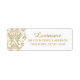 Dourado damask sobre uma etiqueta branca de endereço de retorno de fundo nítida para qualquer ocasião adicionará um toque de elegância a todas as suas mensagens. Este rótulo impresso em ouro e branco cumprimentará nosso conjunto de convites para casamento.